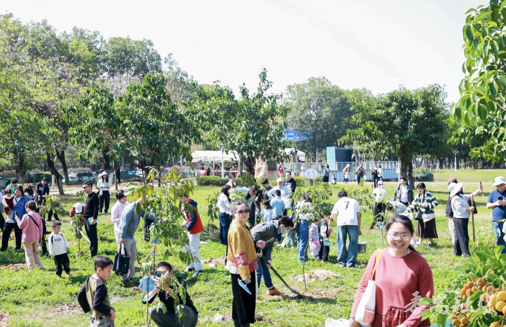 3月14日,由广州大学城志愿者协会、越秀地产广州区域公司联合组织开展的第二届越秀•大学城业主公益植树节在广州大学城南步码头举行。近百组业主家庭围绕“我在大学城生根发芽”这一主题,以树为媒,在3月的阳光下完成了一场关于成长、陪伴与承诺的社区盛事,共同种下一棵棵寓意“学业精进、金榜题名”的龙眼树。